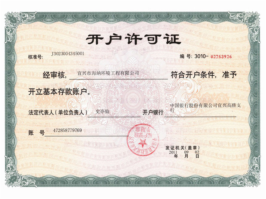 Account opening permit